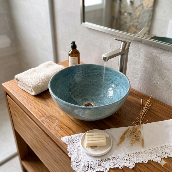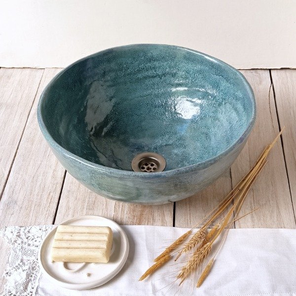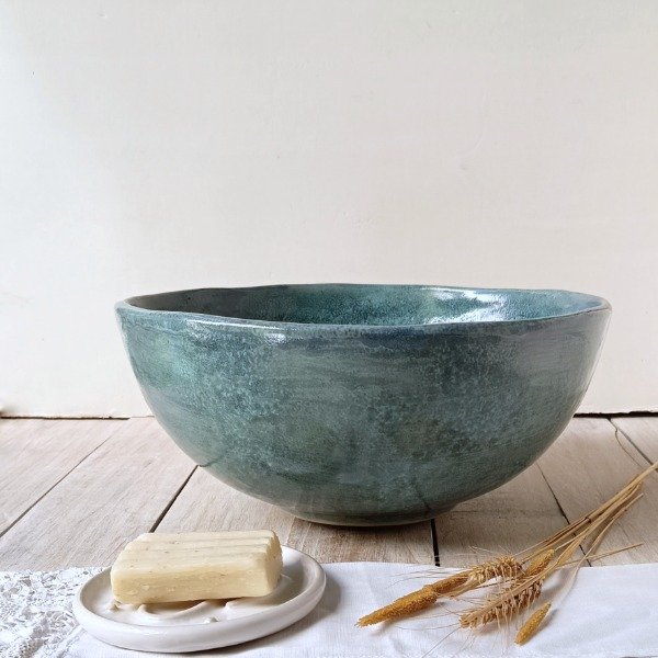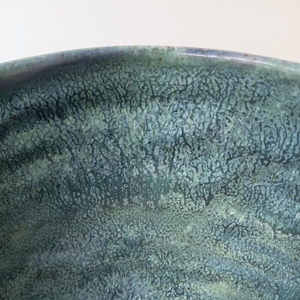 Bordes ligeramente irregulares,formas orgánicas. Superposición de esmaltes. Aplicación a mano tipo pátina.