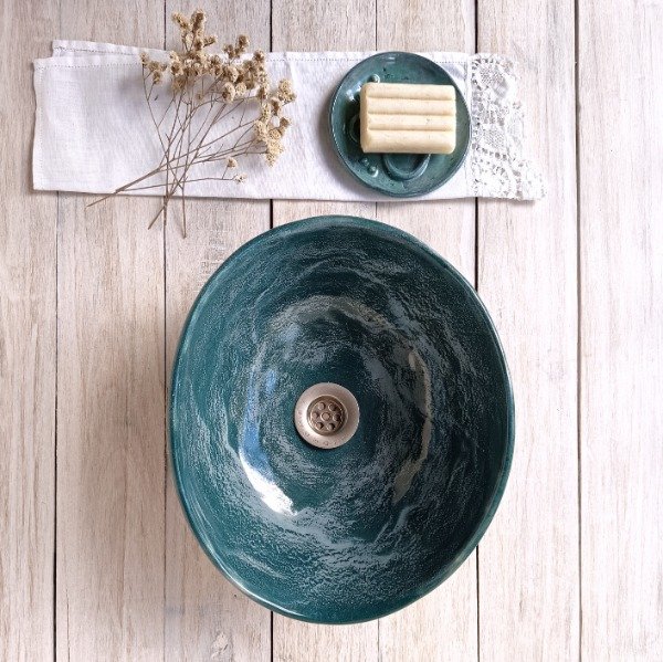 Bacha Elíptica Petróleo jaspeado 30 x 25cm